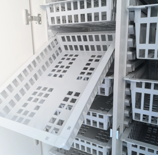 ISO steht für die entsprechende Norm, die die Standard-Maße für die Schränke vorgibt. Das macht den Prozess der Fertigung einfacher und vor allem schneller. Die Korpuskanten der Schränke können mit Staubdichtungsprofilen versehen werden. Auch der Einbau von Auszugsschienen, in die die stabilen Körbe eingehängt werden können, ist möglich. All unsere Modulschränke können verschließbar ausgeführt werden, sind leicht zu reinigen und übersichtlich.